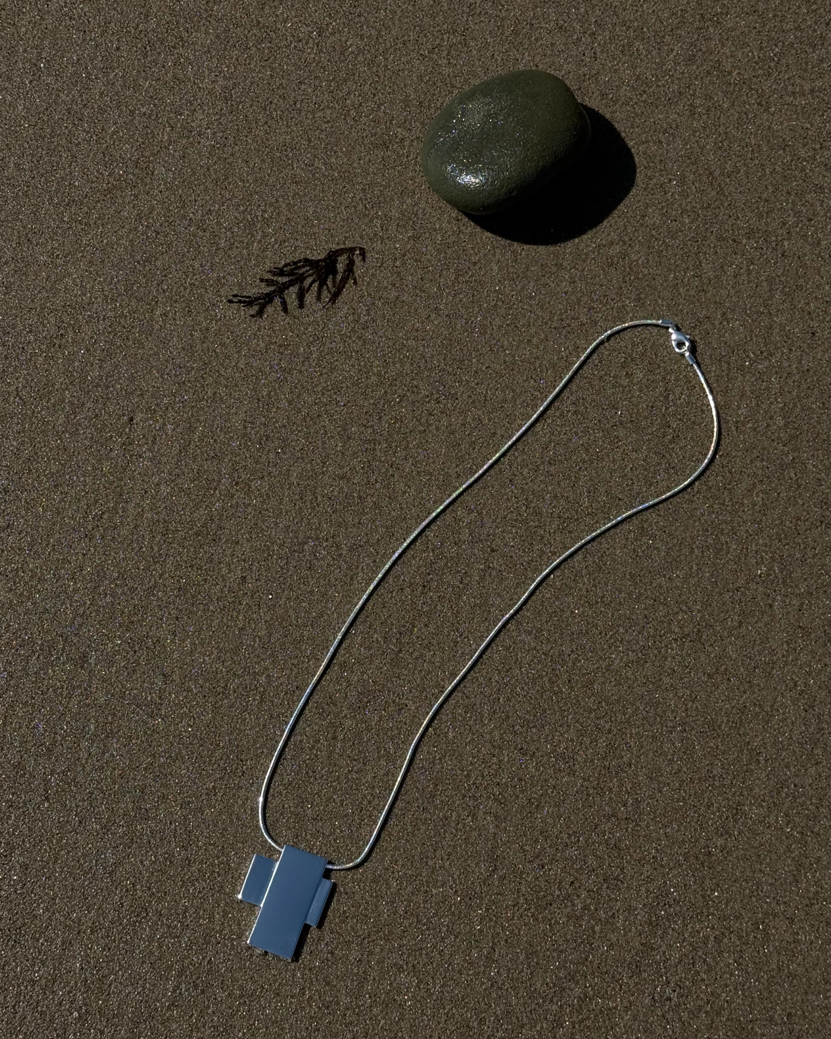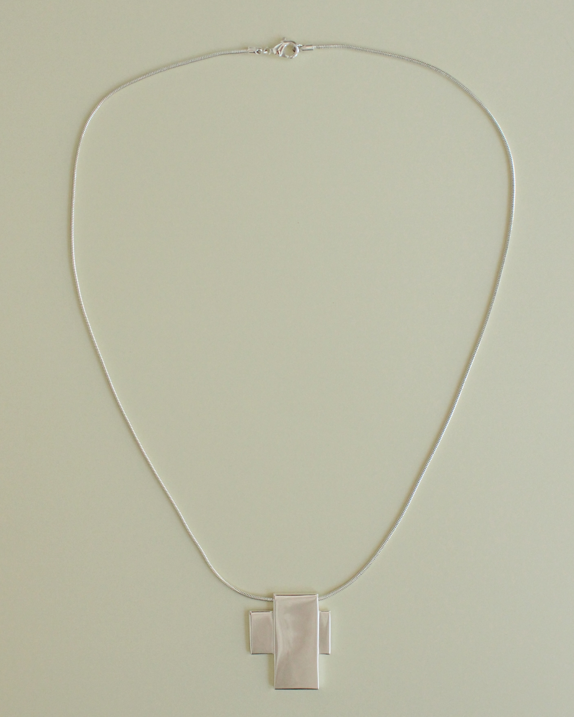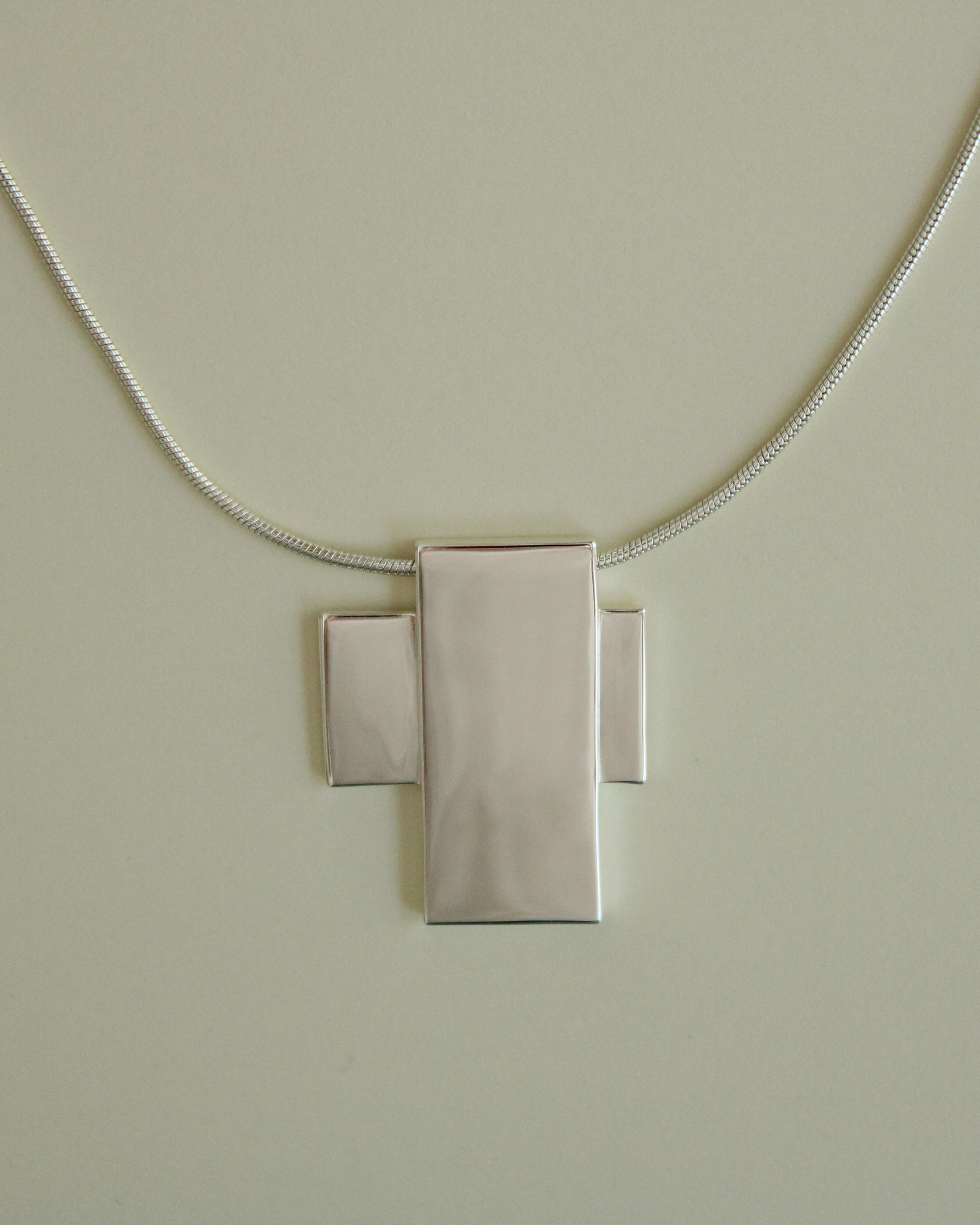 A modern, sculptural take on the classic cross necklace. Bold yet minimal, it offers a subtle connection to something greater — a nod to spirituality and higher powers, designed for the effortlessly cool.